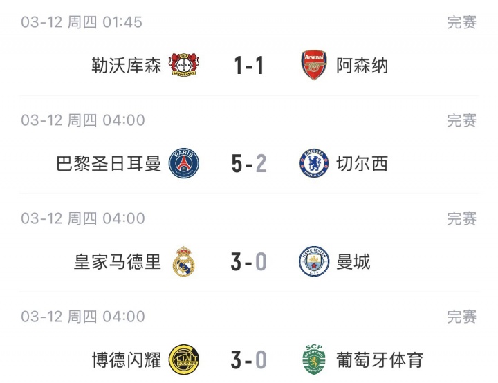 03月12日讯 欧冠1/8决赛首回合比赛结束,种子队只有拜仁客场取胜。